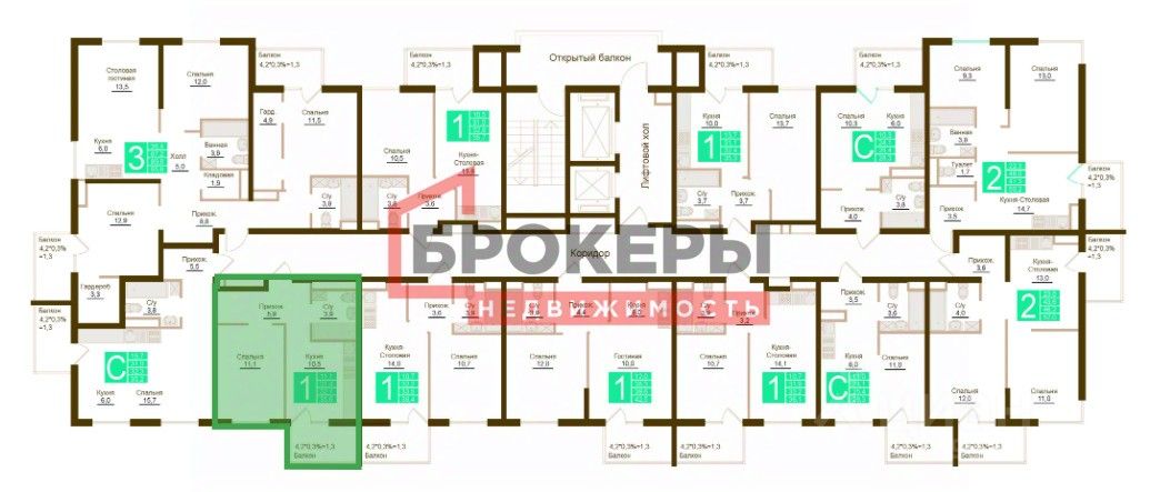 -Комната площадью - 11,1 м2