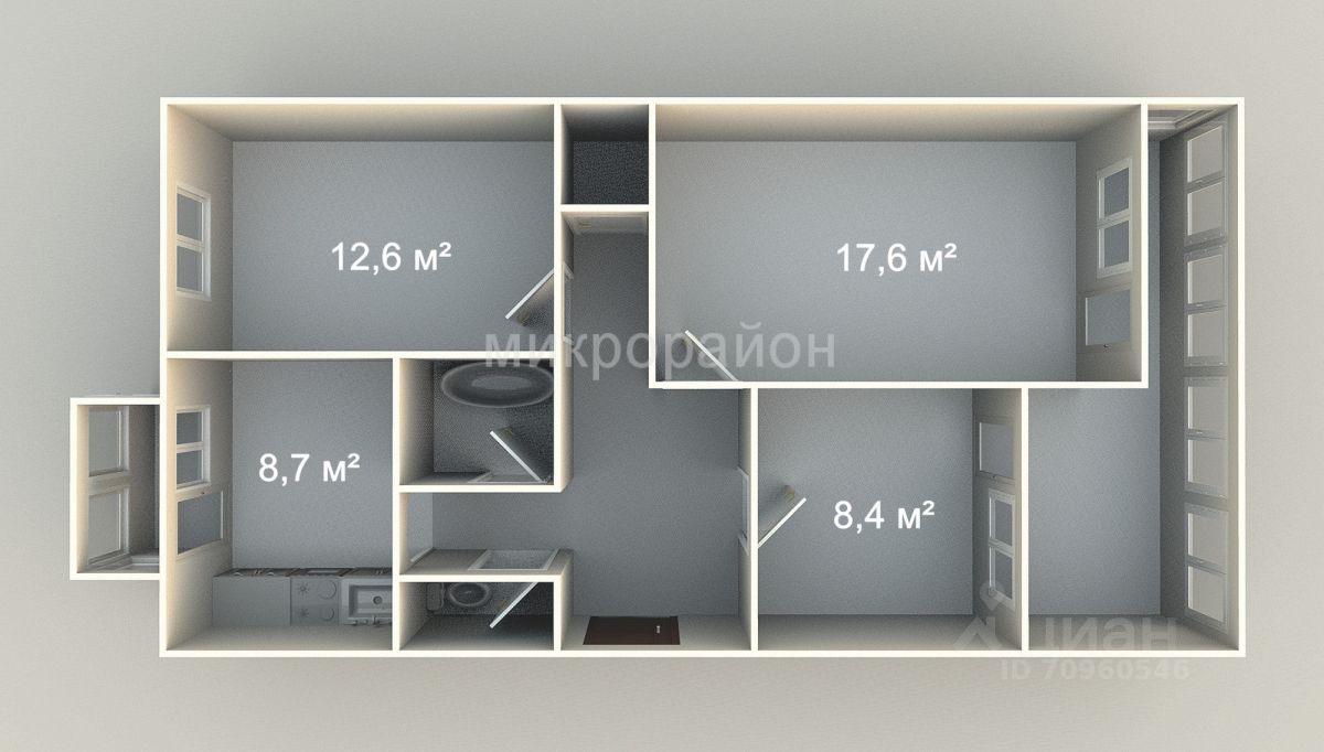 Квартира с балконом и большой лоджией на два входа.