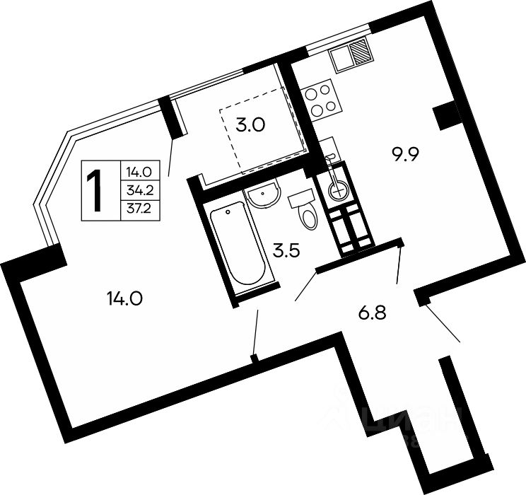 Продаётся 1-комнатная квартира в строящемся доме (Блок 5), срок сдачи: IV-кв. 2028, общей площадью 37.2 кв.м., на 9 этаже. Расположение, транспортная доступность