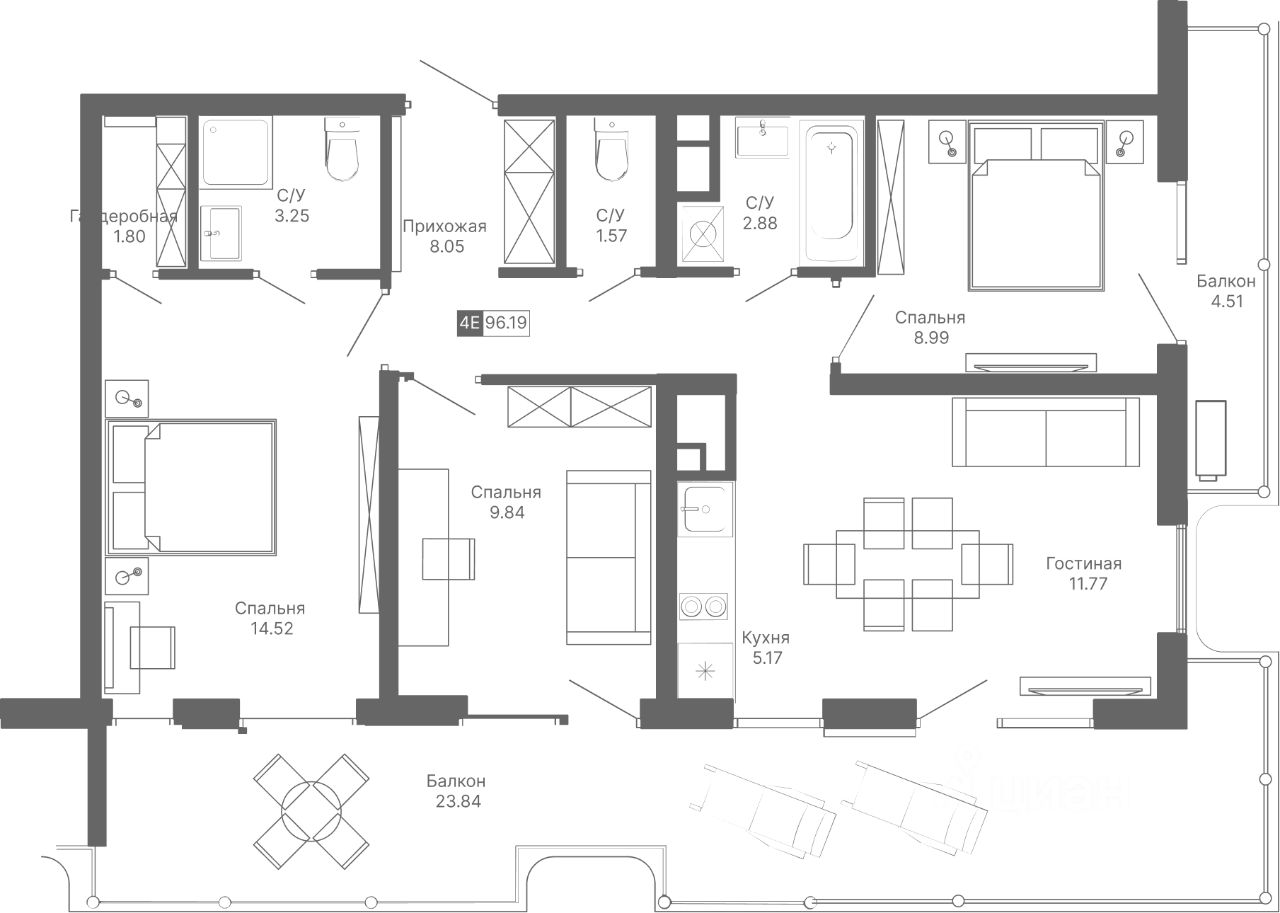 Общая площадь96,19 м²