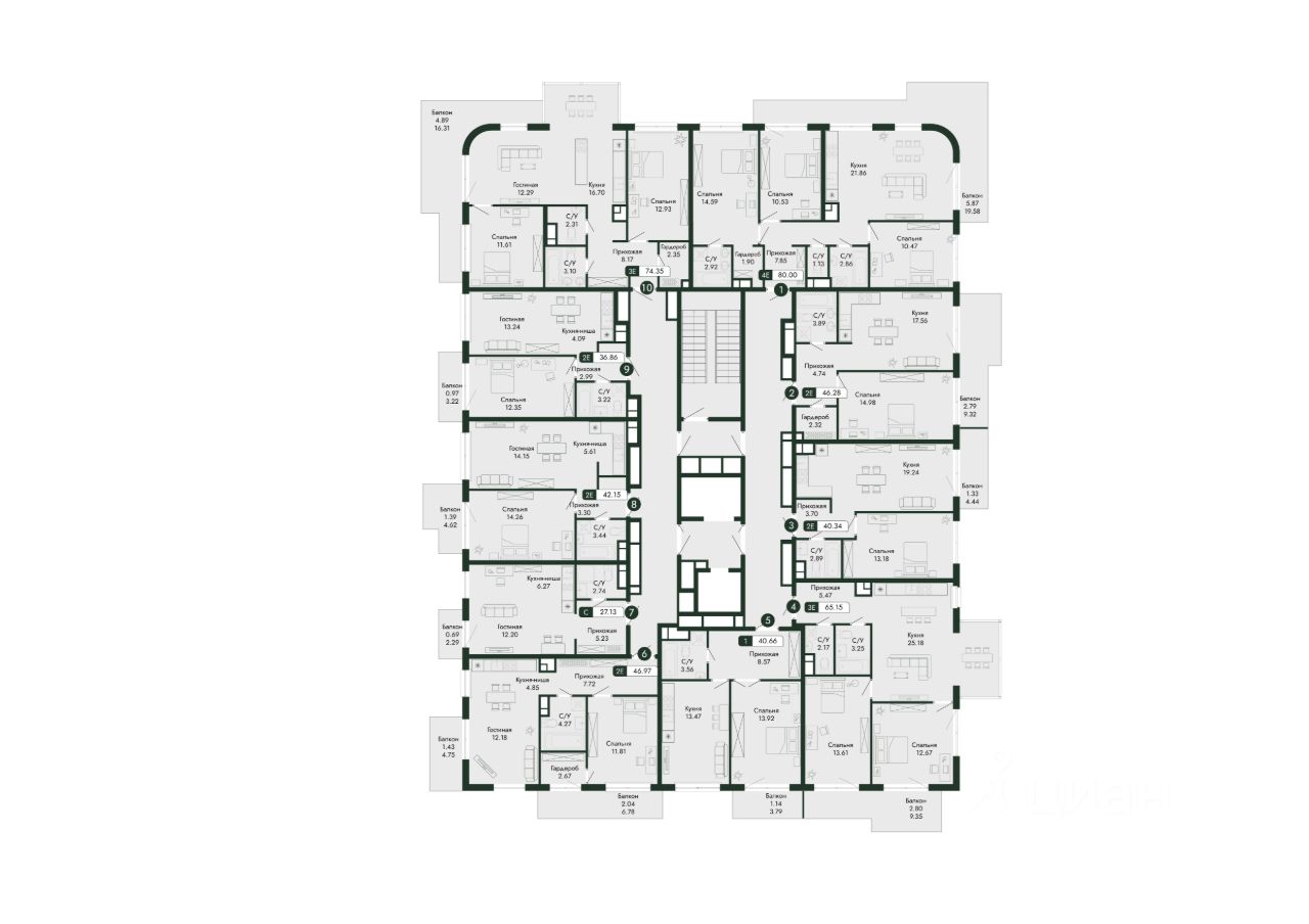 - 3 мини-квартала, названия которых отражают растительность территории - Можжевеловый, Эвкалиптовый, Миндальный.