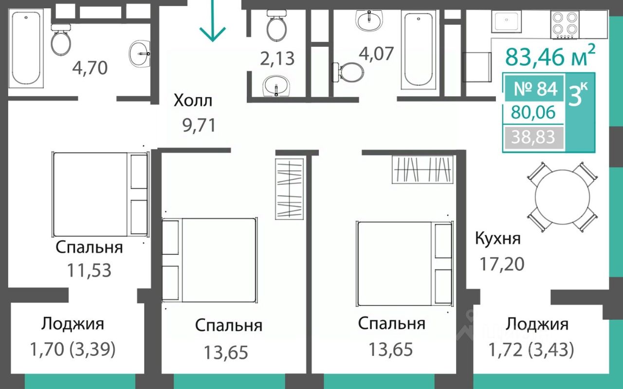 Продаётся 3-комнатная квартира в строящемся доме (Этап 2), срок сдачи: I-кв. 2026, общей площадью 80.06 кв.м., на 11 этаже. Жилой комплекс "Миндаль" от застройщика "Капитал-ИнвестГрупп" в городе Симферополь на улице Никанорова.
