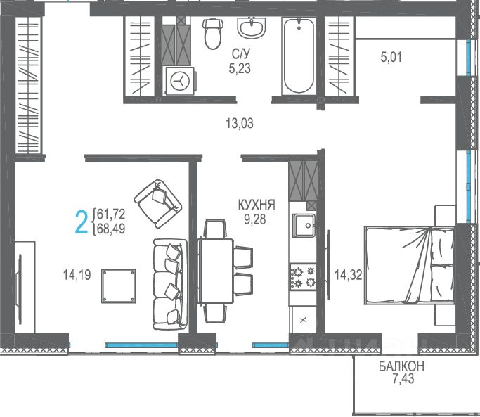 68,49 м²