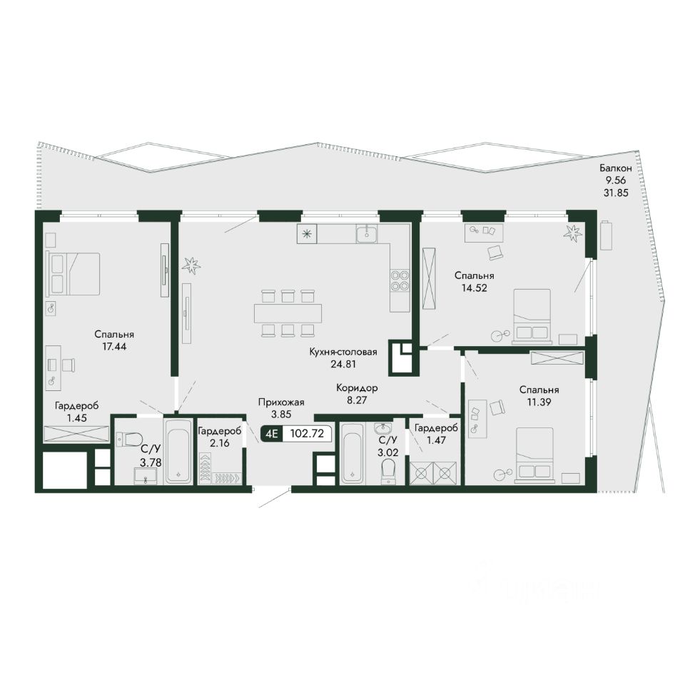 Общая площадь102,72 м²
