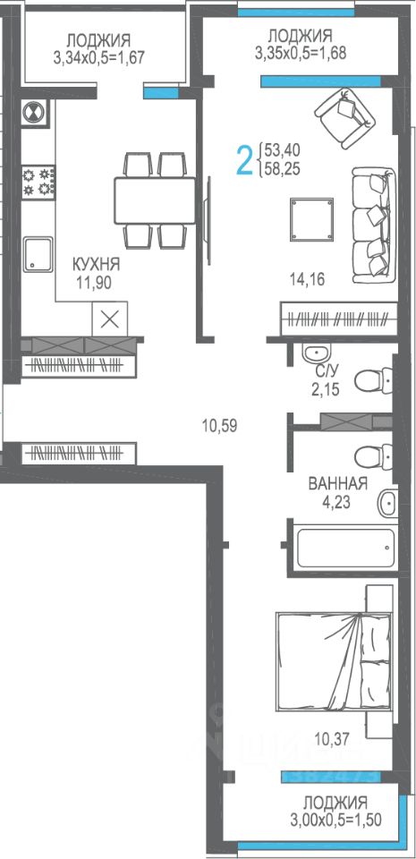 Продаётся 2-комнатная квартира в сданном доме (Багликова, 27/7 (Корпус 7)), срок сдачи: I-кв. 2026, общей площадью 58.25 кв.м., на 5 этаже. Жилой комплекс "На Фонтанке" в городе Алушта на улице Багликова.