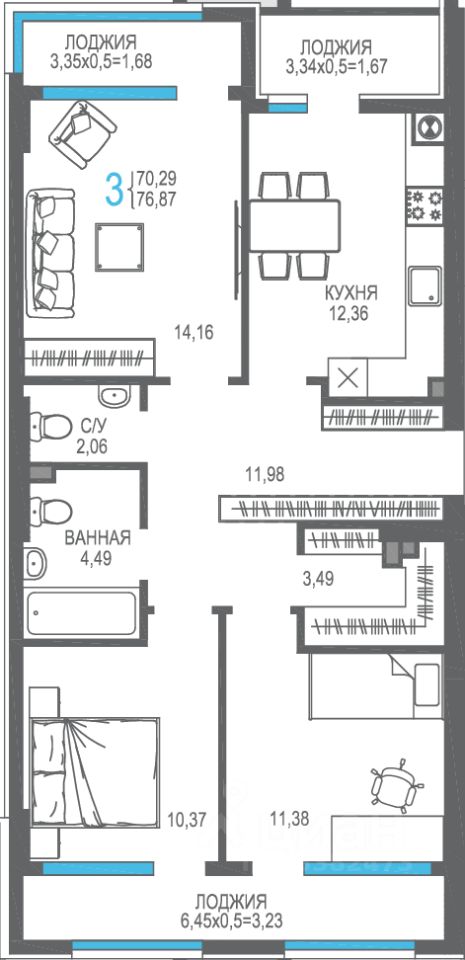 76,87 м²
