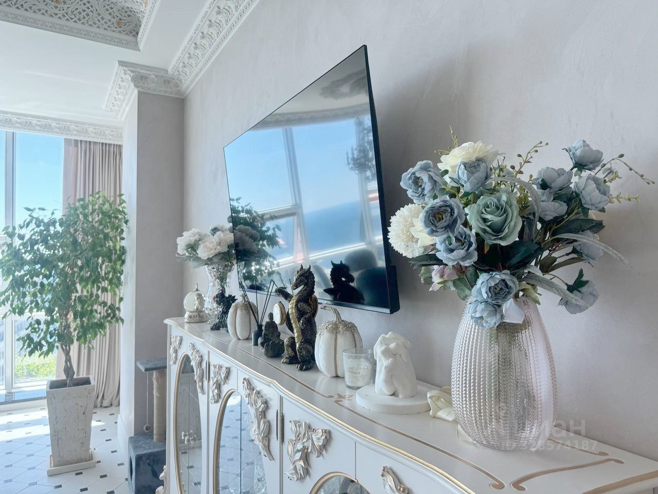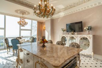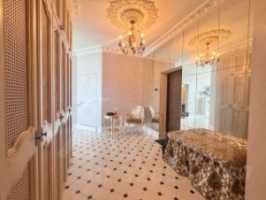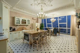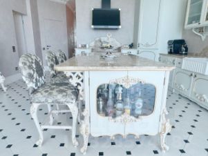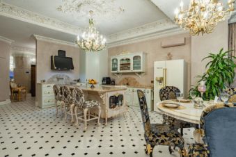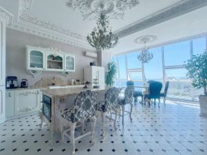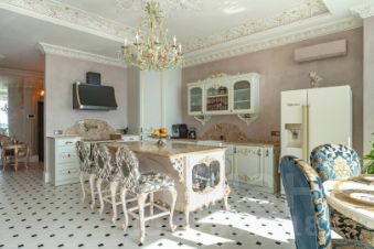 Дизайнерский ремонт, выполненный с использованием мебели от Romano Home и изысканных элементов от итальянского бренда Bianchini&Capponi, удовлетворит даже самых требовательных покупателей. Потолки украшены гипсовой лепниной с художественным декорированием, а стены оформлены премиальной итальянской декоративной штукатуркой и ручной росписью в стиле старинных европейских интерьеров. Испанская плитка, итальянская паркетная доска, сантехника от Lineatre и Boheme, а также стилизованная техника Kuppersberg создают атмосферу изысканности и уюта.