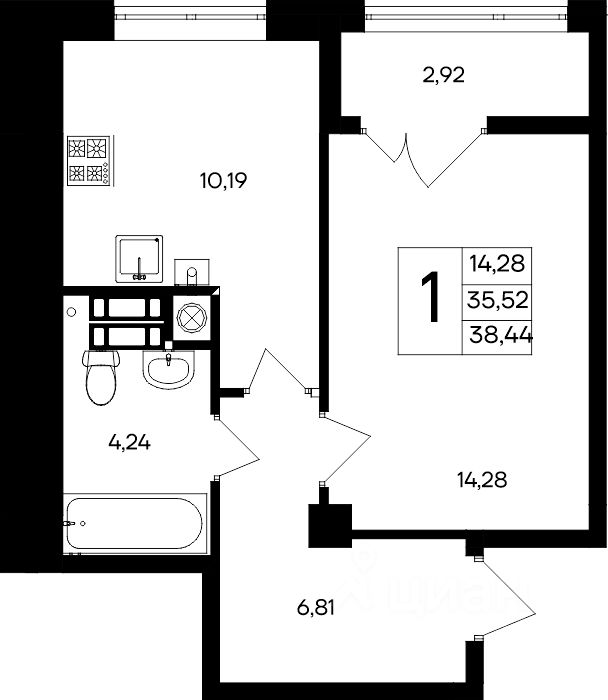 Продаётся 1-комнатная квартира в строящемся доме (Жилой дом 1), срок сдачи: I-кв. 2029, общей площадью 38.44 кв.м., на 3 этаже. "Парковые кварталы" - новый объект от "ИнтерСтрой"