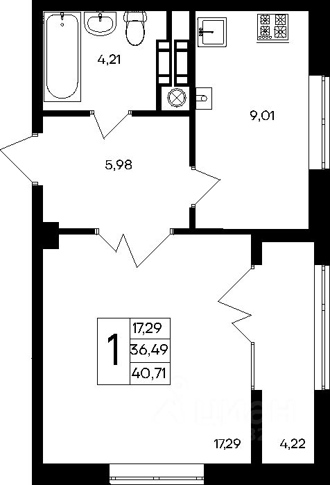 - эргономичные однокомнатные от 31 до 52 м