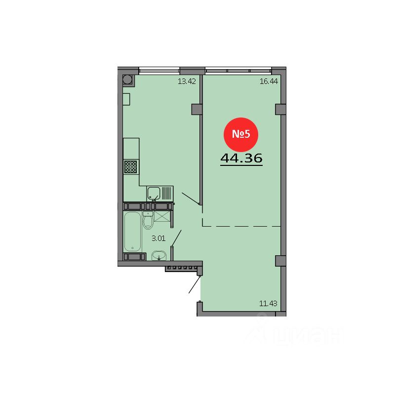 Общая площадь44,36 м²
