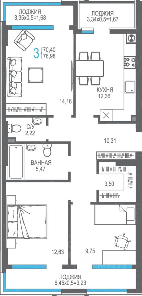 Продаётся 3-комнатная квартира в сданном доме (Багликова, 27/8 (Корпус 8)), срок сдачи: I-кв. 2026, общей площадью 76.98 кв.м., на 1 этаже. Жилой комплекс "На Фонтанке" в городе Алушта на улице Багликова.