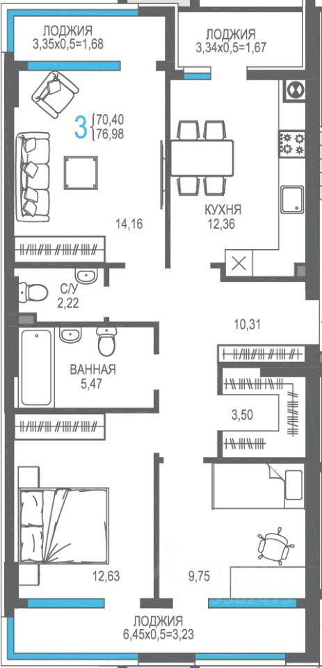 Продаётся 3-комнатная квартира в строящемся доме (Корпус 4), срок сдачи: I-кв. 2026, общей площадью 76.98 кв.м., на 1 этаже. Жилой комплекс "На Фонтанке" в городе Алушта на улице Багликова.