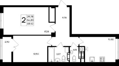 Продаётся 2-комнатная квартира в строящемся доме (Жилой дом 1), срок сдачи: I-кв. 2029, общей площадью 59.1 кв.м., на 5 этаже. "Парковые кварталы" - новый объект от "ИнтерСтрой"