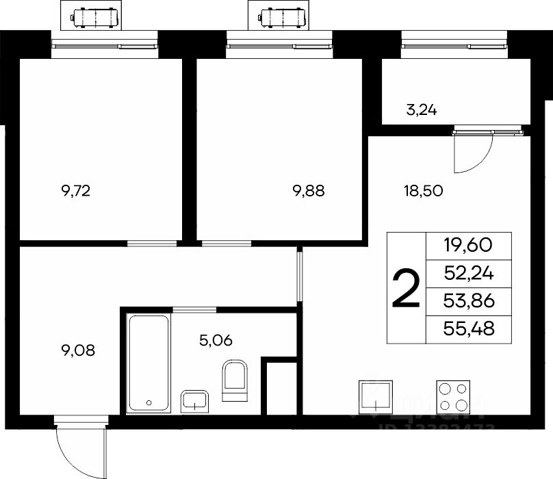 Продаётся 2-комнатная квартира в строящемся доме (Дом 1), срок сдачи: IV-кв. 2028, общей площадью 55.48 кв.м., на 1 этаже. "Новый Судак" - кластер в Кварцевой долине