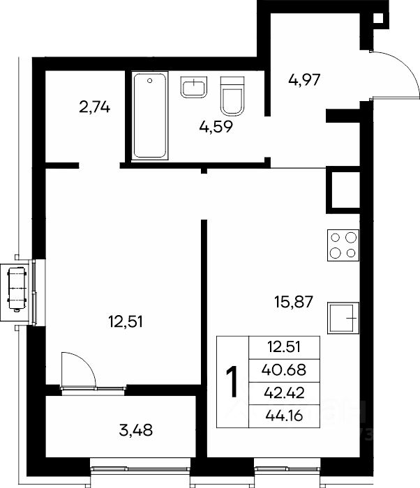 Продаётся 1-комнатная квартира в строящемся доме (Дом 3), срок сдачи: IV-кв. 2028, общей площадью 44.16 кв.м., на 2 этаже. "Новый Судак" - кластер в Кварцевой долине