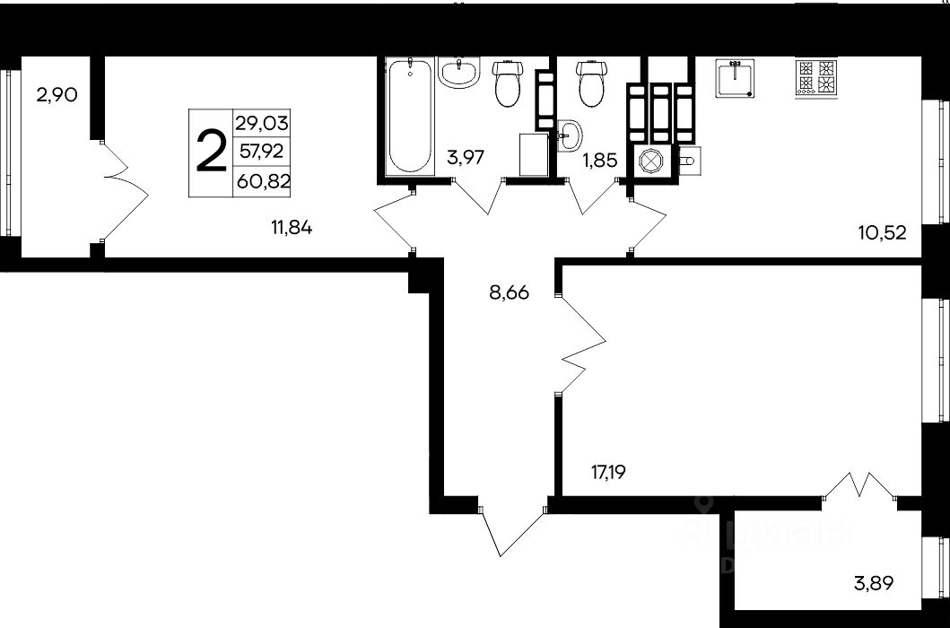 Продаётся 2-комнатная квартира в строящемся доме (Жилой дом 1), срок сдачи: I-кв. 2029, общей площадью 60.82 кв.м., на 6 этаже. "Парковые кварталы" - новый объект от "ИнтерСтрой"