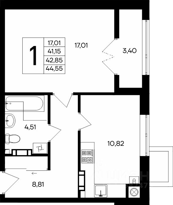 44,55 м²