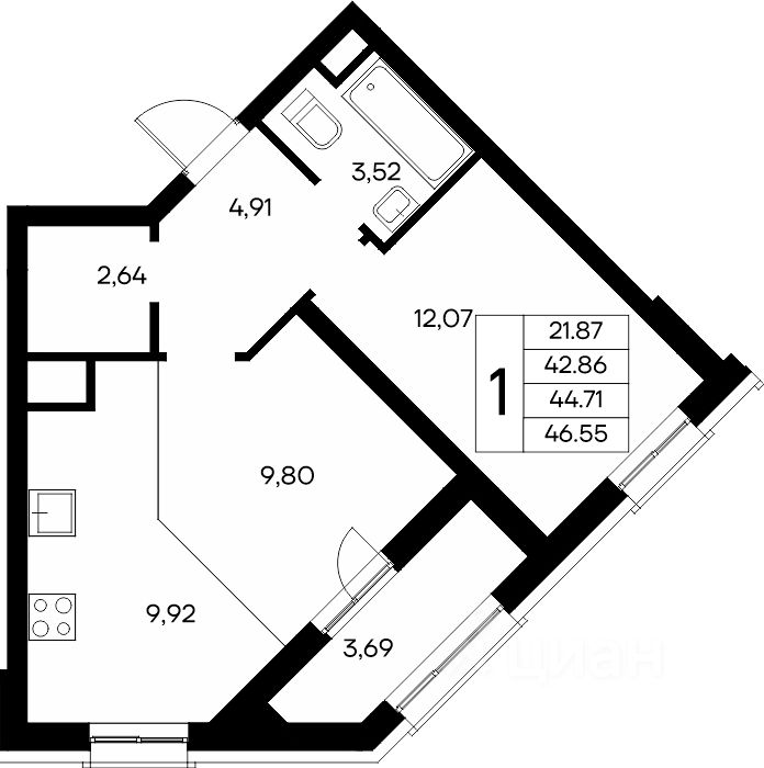 Продаётся 1-комнатная квартира в строящемся доме (Дом 3), срок сдачи: IV-кв. 2028, общей площадью 46.55 кв.м., на 2 этаже. "Новый Судак" - кластер в Кварцевой долине
