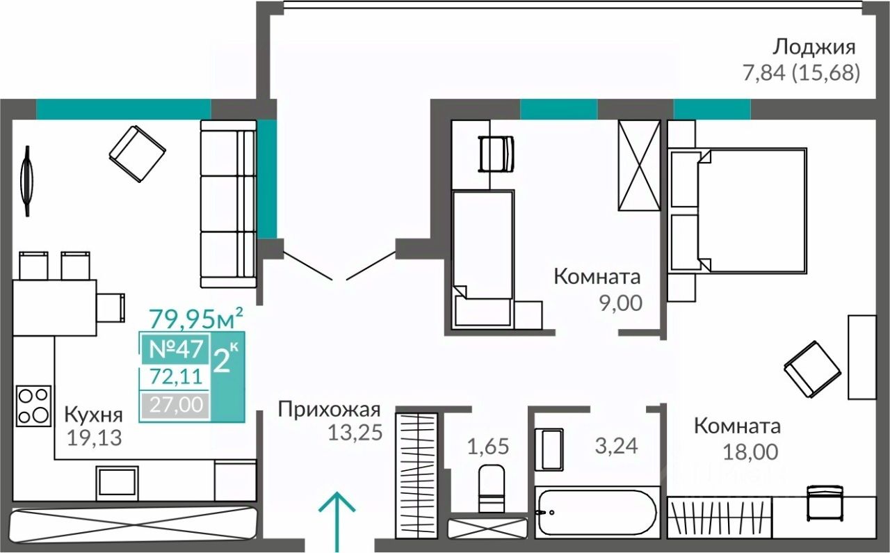 Продаётся 2-комнатная квартира в строящемся доме (С7), срок сдачи: III-кв. 2027, общей площадью 72.11 кв.м., на 7 этаже. Жилой квартал "Абрикос" - начало яркой истории жизни в прогрессивном районе Симферополя - Семья городских кварталов "Крымская Роза".