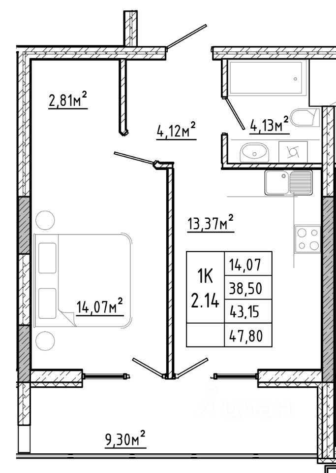 14,1 м²
