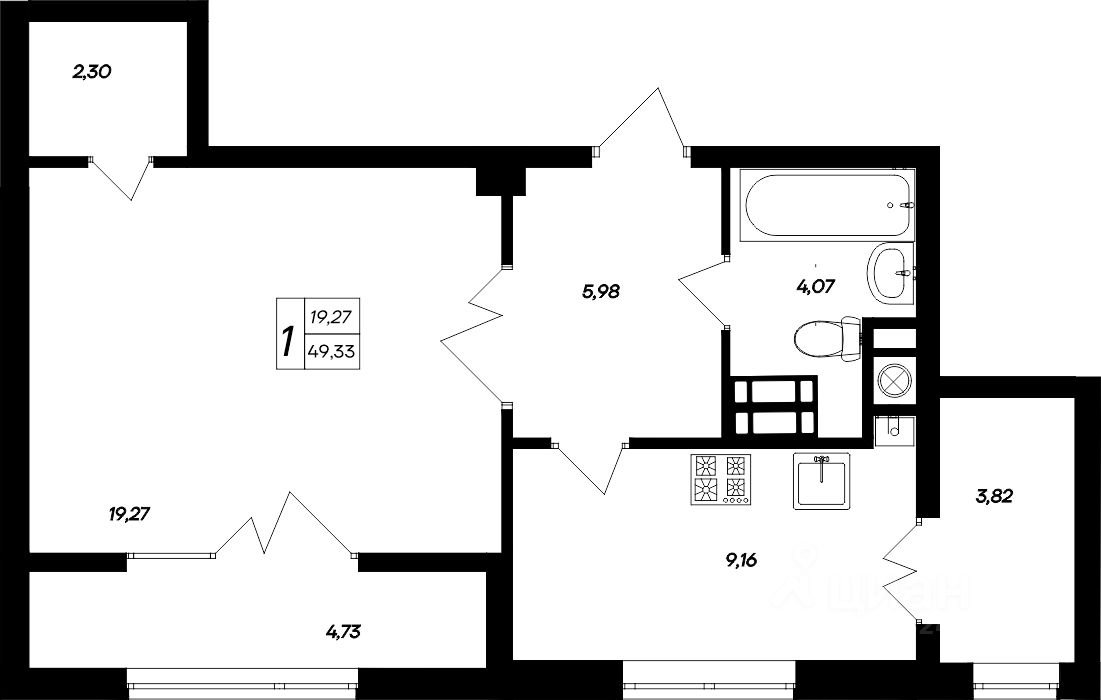 Продаётся 1-комнатная квартира в строящемся доме (Корпус 1), срок сдачи: II-кв. 2027, общей площадью 49.33 кв.м., на 3 этаже. "Парковые кварталы" - новый объект от "ИнтерСтрой"