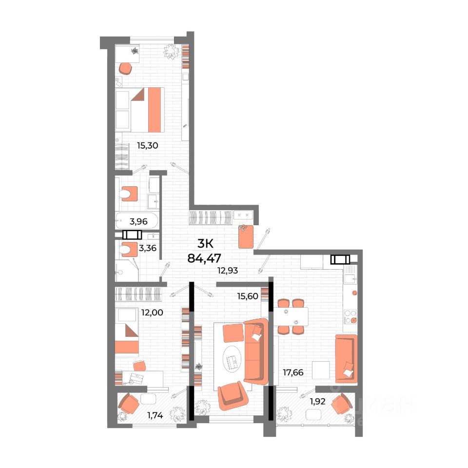 Продаётся 3-комнатная квартира в сданном доме (Корпус 1), срок сдачи: I-кв. 2025, общей площадью 83.3 кв.м., на 7 этаже. Жилой комплекс "Moinaco Riviera" от застройщика "СЗ СДК" в городе Евпатория на улице 60-летия СССР.