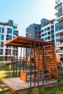 Внутренние пространства дворов ЖК приватны и безопасны. Можно с комфортом провести время в тенистых беседках или прогуляться по променадной площади с фонтаном. Мы позаботились и о наших маленьких жильцах, специально для них будут построены современные игровые комплексы.