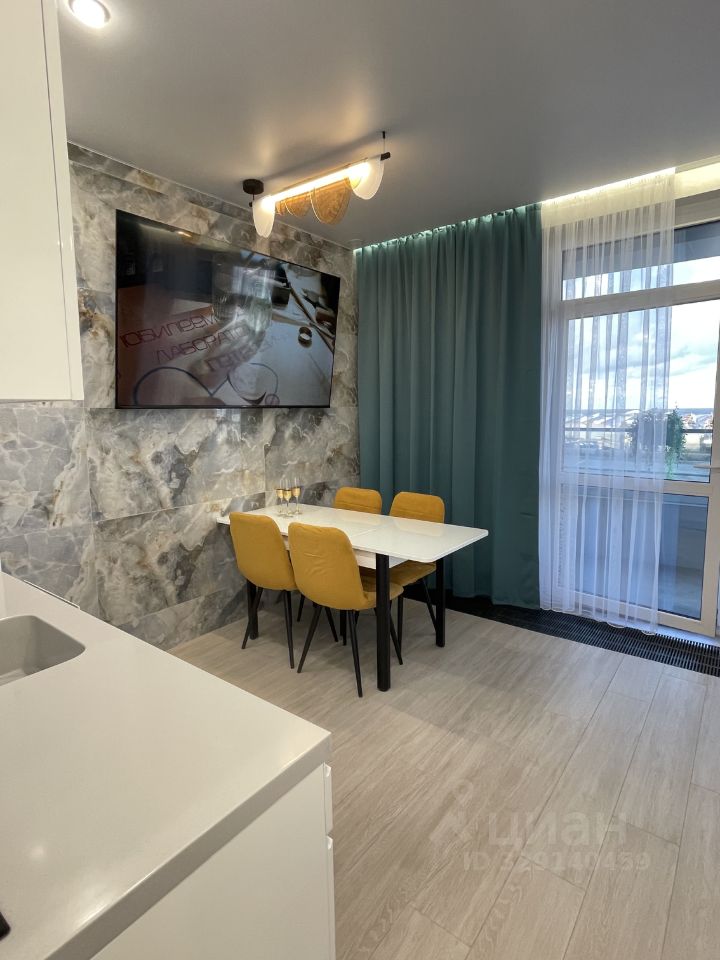 Столешница из искусственного камня с интегрированной мойкой. Есть посудомойка. Огромный телевизор, диагональ 80 дюймов. Пол керамогранит! По всей квартире тёплый пол.