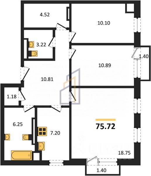 Три изолированных просторных комнаты, два балкона, два совмещенных санузла, уютная кухня.