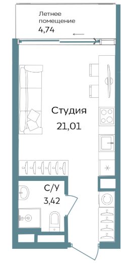 Продается апартаменты-студия, 29,17 м²