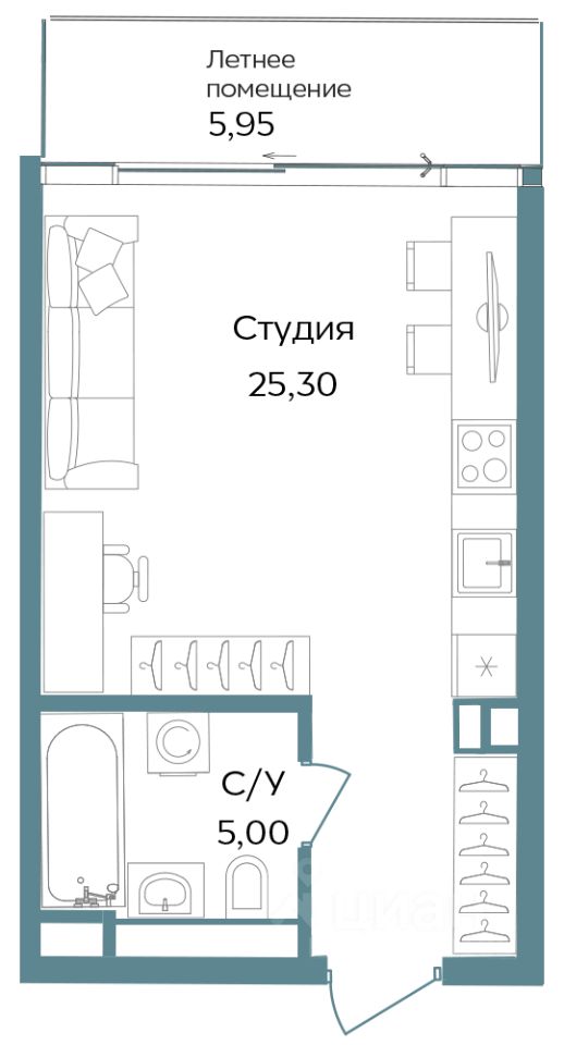 Продается апартаменты-студия, 36,25 м²