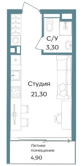 Продается апартаменты-студия, 29,5 м²