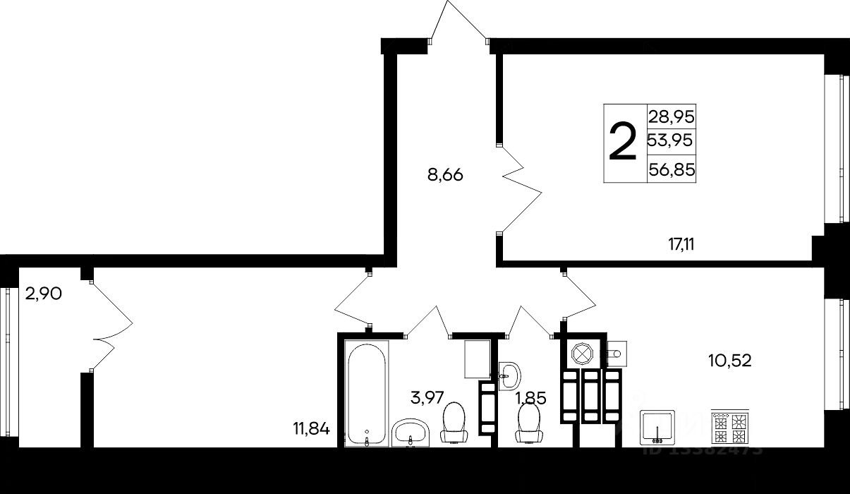 Продаётся 2-комнатная квартира в строящемся доме (Жилой дом 1), срок сдачи: I-кв. 2029, общей площадью 56.85 кв.м., на 8 этаже. "Парковые кварталы" - новый объект от "ИнтерСтрой"