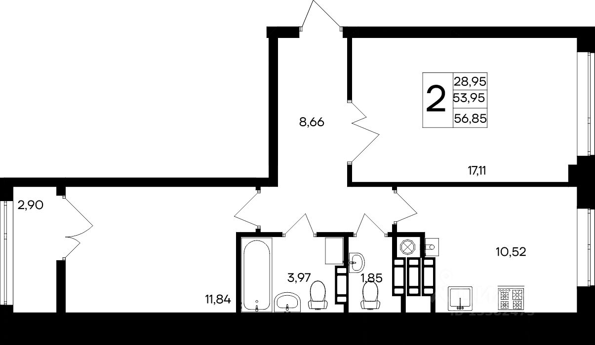 Продаётся 2-комнатная квартира в строящемся доме (Жилой дом 1), срок сдачи: I-кв. 2029, общей площадью 56.85 кв.м., на 7 этаже. "Парковые кварталы" - новый объект от "ИнтерСтрой"