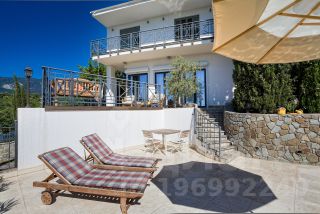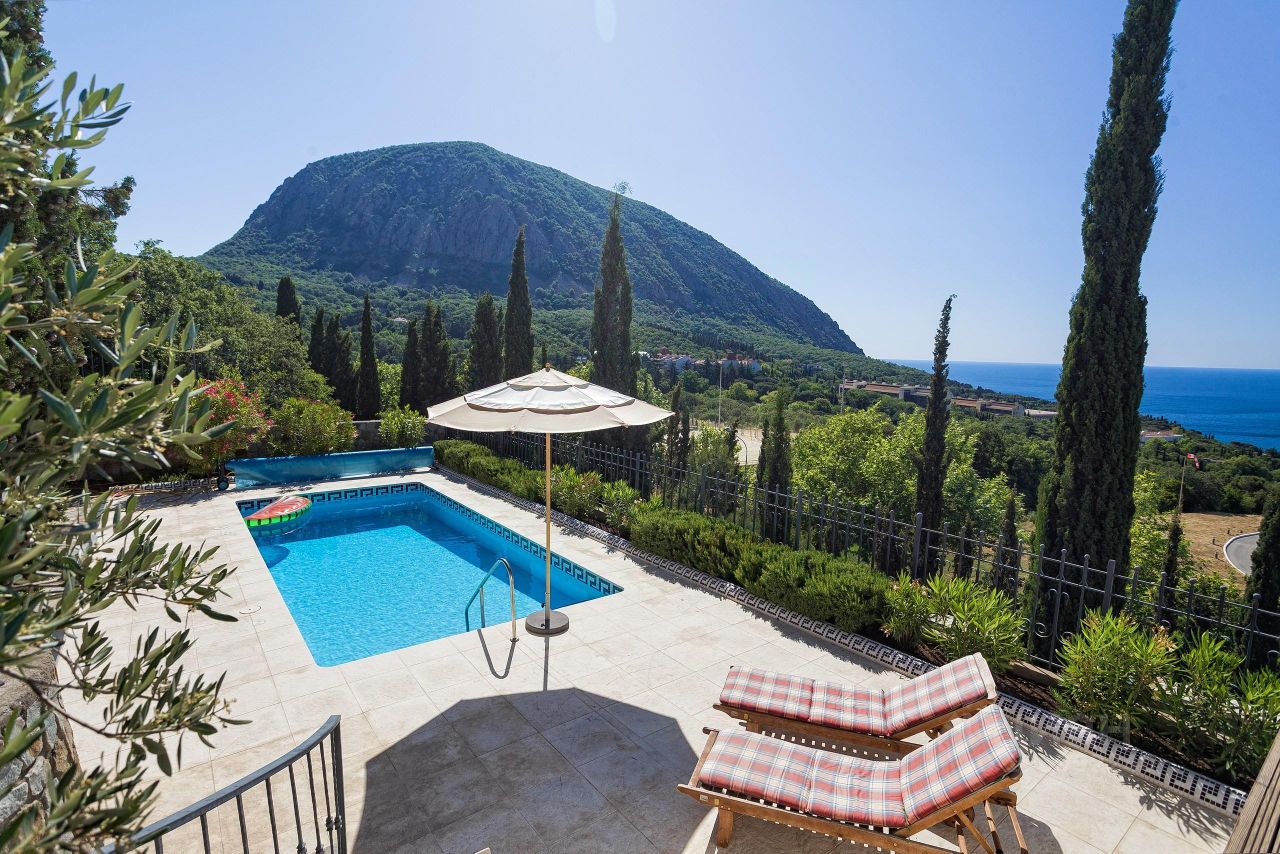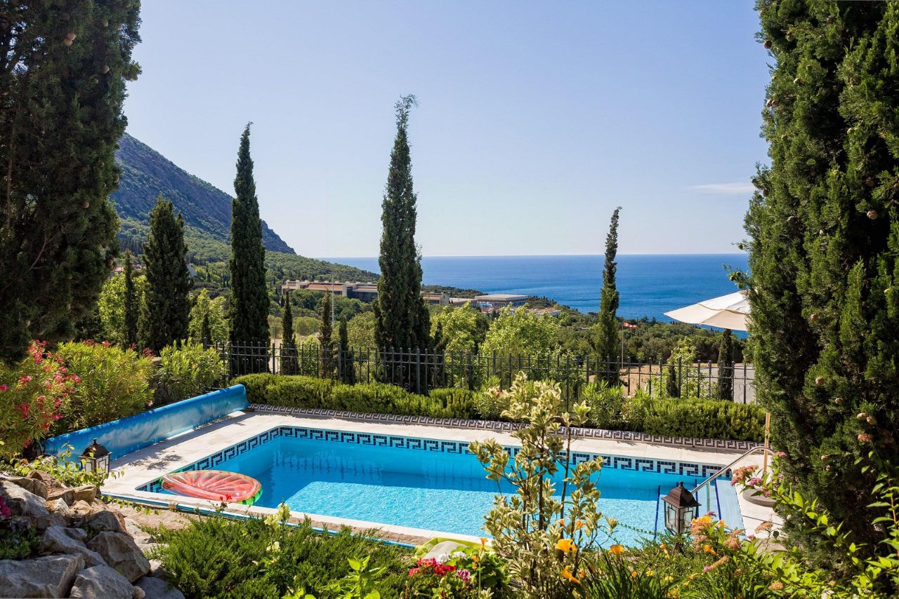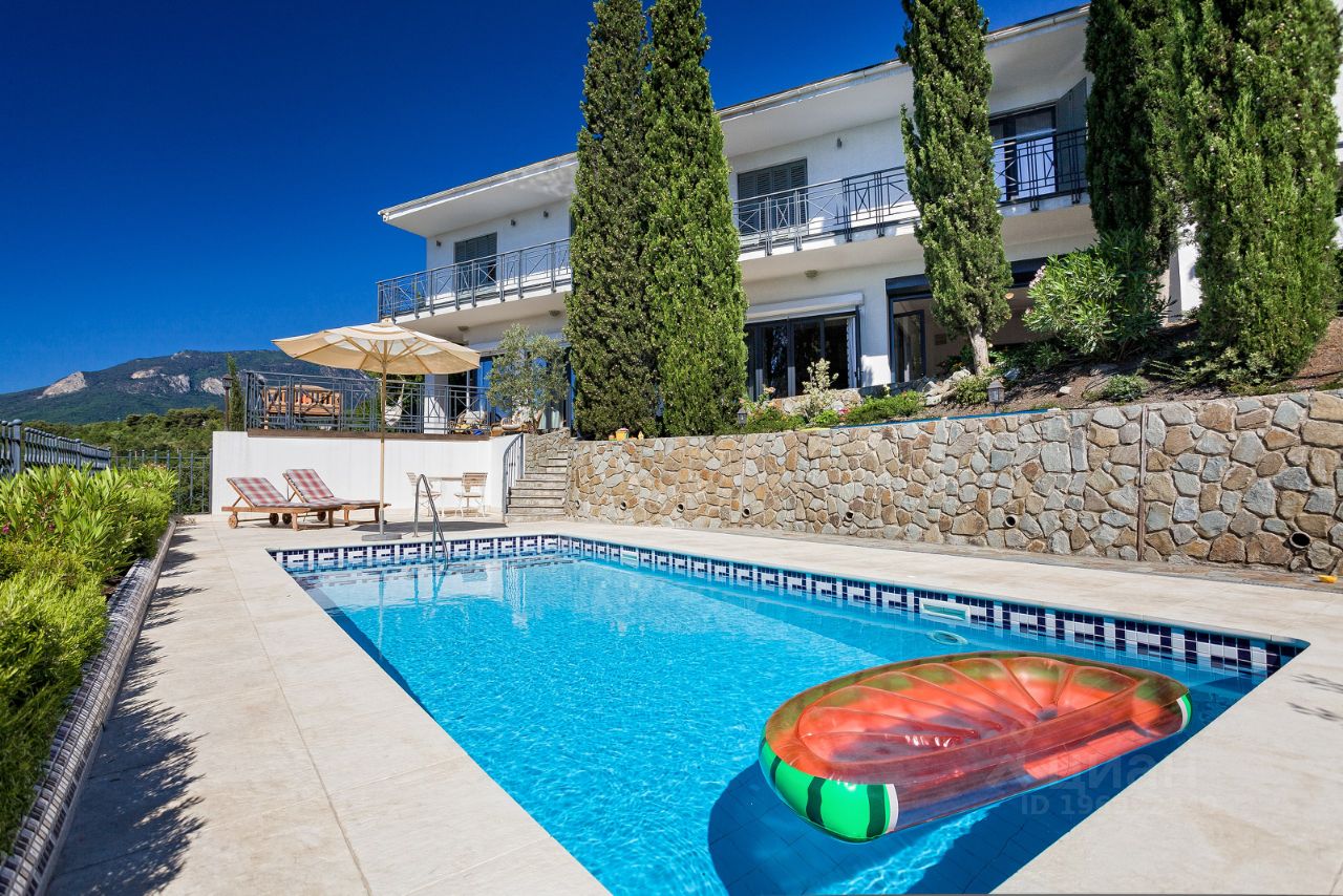 Продажа особняка в Гурзуфе. Почему именно особняк, данный дом максимально изолирован и скрыт от посторонних глаз, дом и его замечательная территория надежно скрыты от любопытных глаз, вечно зеленой субтропической растительностью. К дому отдельный подъезд, дом по всему периметру огорожен капитальным забором. Дом спроектирован и построен по индивидуальному авторскому проекту. Двухэтажный белоснежный особняк в средиземноморском стиле общей площадью 450 кв.м. В доме: четыре спальни с панорамным застеклением и завораживающим видом на гору Медведь Аю-Даг и море, четыре сан узла, кухня-столовая с выходом на террасу с летней кухней и к бассейну. Также в доме сауна, хамам, гараж для авто. Земельный участок 15 соток, на участке ландшафтный дизайн, беседка с панорамным видом на море и горы, бассейн с подогревом и зоной загара, джакузи. Сообщение между этажами осуществляется на современном лифте. Дом очень светлый и просторный с высокими потолками и панорамными видами. Дом построен в 2013 году, в доме практически никто не жил. По соседству расположен детский лагерь Артек, в пошаговой доступности ухоженные мелко галечные пляжи с отличной инфраструктурой. Дом и земельный участок в собственности, документы РФ готовы к продаже. Все городские коммуникации: вода, свет, канализация, газ.