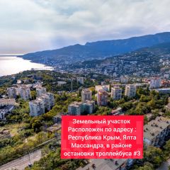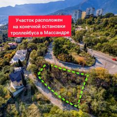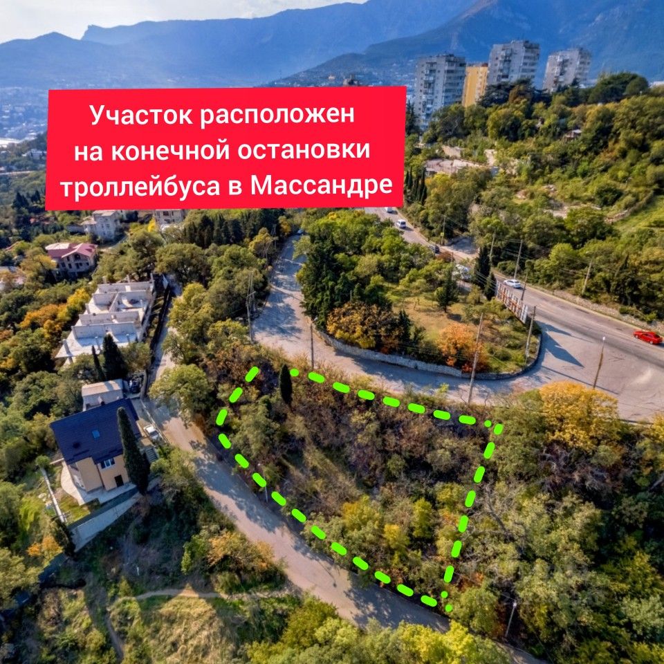 Участок расположен в живописном районе Массандра, в непосредственной близости от гостиничного комплекса Ялта-Интурист и моря.