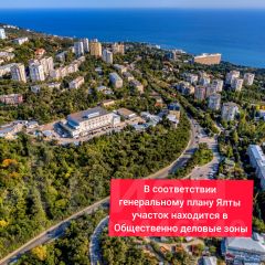 Согласно утверждённому Генеральному плану Ялты, участок относится к общественно деловым зонам. Это значит, что вы можете реализовать здесь любой проект, который соответствует этим требованиям.