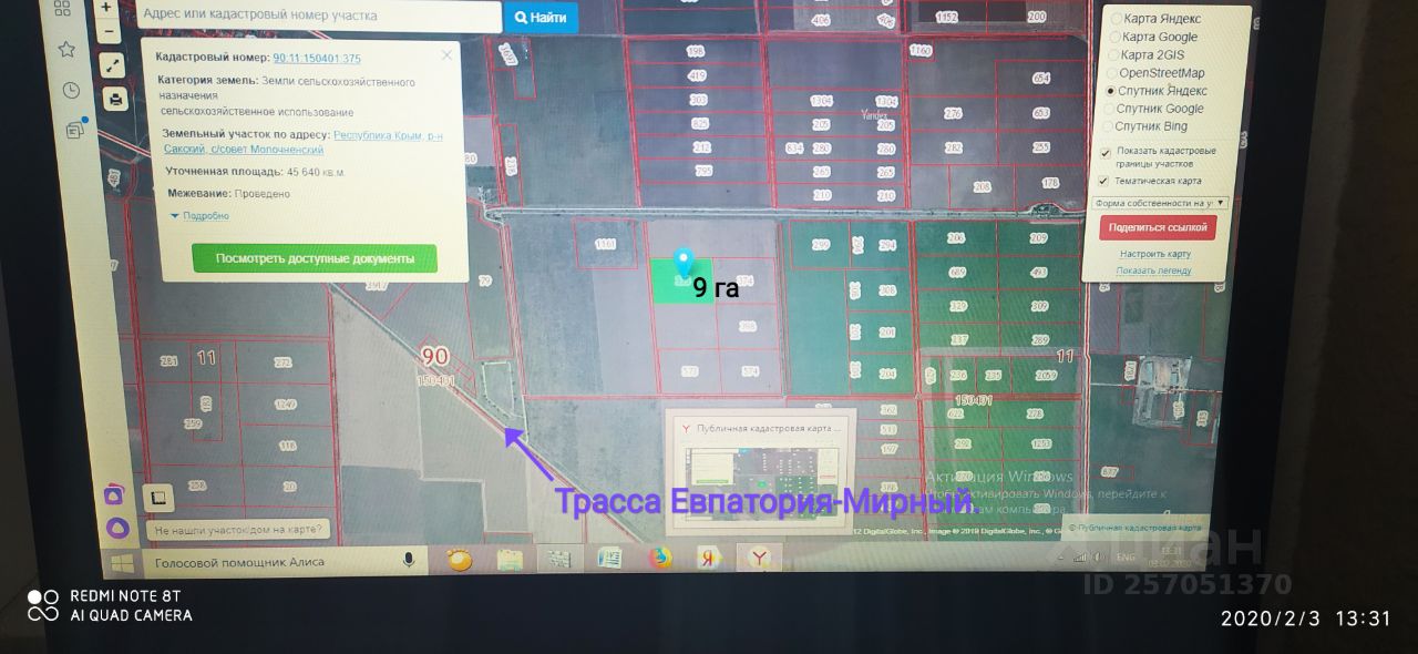 Два участка по 4,5 га, расположены рядом с трассой Евпатория-Мирный, все документы готовы, собственник один человек.