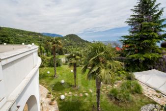 Дом площадью 528 кв.м. расположился на участке 15 соток .На вилле 5 спален , 5 сан.узлов. Высота 2 этажа . На первом этаже мраморный пол с подогревом .На первом этаже дома две спальни, кухня столовая, гостиная с панорамными окнами и выходом на террасу и двор. Второй этаж три спальни и три санузла . Выход на открытую террасу . С дома открывается Красивый вид на море и горы. Вид не перекрываемый.