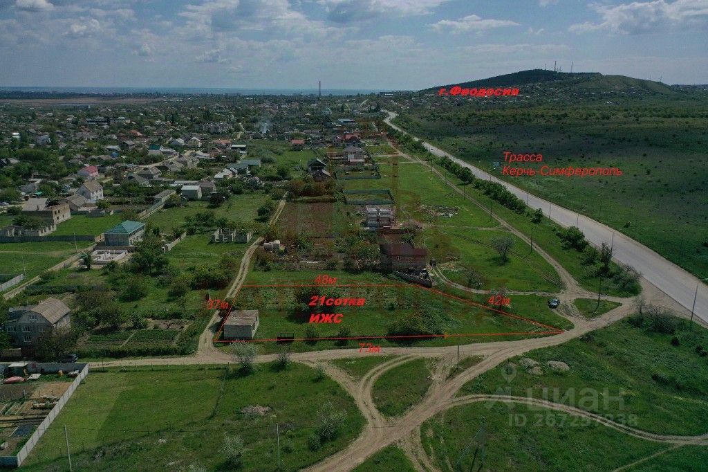 Продам земельный участок в пригороде Феодосии вдоль трассы Керченское шоссе. Общая площадь 21 сотка. Участок ровный, без перепадов и подтоплений, угловой. Электричество заведено 15 кВт. Подключены к центральным сетям водоснабжения. Газ в 50 метрах.