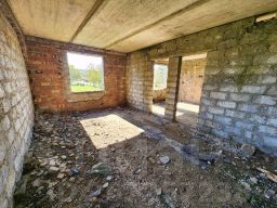 На участке расположен недостроенный дом 8х8 с двумя комнатами и подвальным помещением. Есть возможность возвести второй этаж.