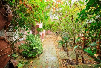 На территории, кроме дома, расположен сад с плодовыми и декоративными растениями, декоративный бассейн, летняя беседка, зона барбекю.