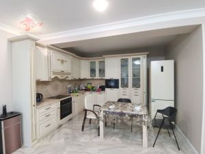 В доме 2 изолированные комнаты: спальня с панорамным окном и отдельным выходом во двор, детская, гостиная совмещенная с кухней и панорамными окнами. 2 санузла (один совмещен с постирочной, второй с отдельной душевой). 2 отдельные гардеробные комнаты, кондиционеры. Теплые полы. Центральное водоснабжение, электричество 3 фазы, стабилизаторы, канализация. Дизайнерский ремонт. Материал весь импортный, дорогая сантехника и мебель.
