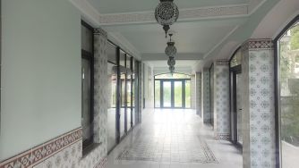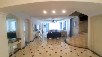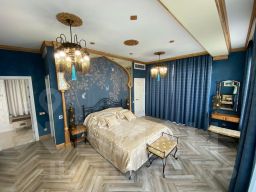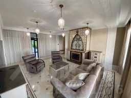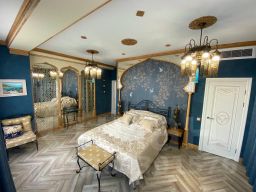 - 2 этаж: галерея, выполненая в восточном стиле, с панорамными окнами, стеновыми панно из натуральной мозаики, мраморным фонтанчиком; гостиная, в которой находится мебель из натуральной кожи, камин, отделанный натуральным камнем, две жилые комнаты, также выполненные в восточном стиле, с сан.узлами и гардеробными.