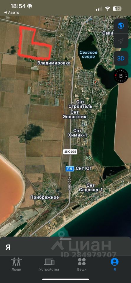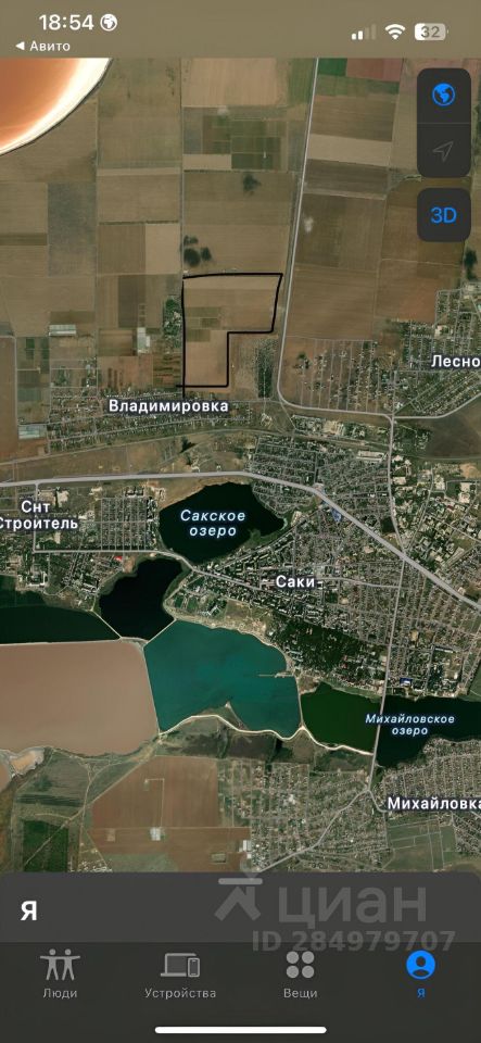 На первой линии от города. Граничит с селом Владимировка, Владимировка граничит с городом Саки.
