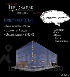 Продажа от собственникаНе арендаЧастная собственность Вид разрешённого использования Объекты дорожного сервиса, код по классификатору: 4.9.1. Идеальный вид для строительства заправочной станции, придорожной гостиницы, объектов обеспечения дорожного отдыха(кафе, магазины, супермаркеты, гостиницы, хостелы) Земельный участок расположен в центре курортного посёлка Гаспра, площадью 11,5 соток, рядом под благоустройство ещё 4 сотки муниципальной территории. Краснокнижные зелёные насаждения отсутствуют. В непосредственной близости с границей земельного участка проходят сети водоснабжения(так как они не зарегистрированы в ЕГРН, то охранные зоны от трубы полностью отсутствуют и не режут пятно застройки), водоотведения и электроснабжения(охранная зона установлена для высоковольтного подземного кабеля, площадь которой составляет 56 кв.м).