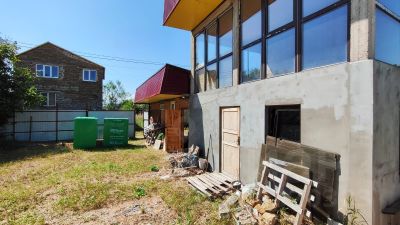 Построен дом. Построен гараж капитальный на две машины теплый с ракушки, рядом с гаражом, сауна на 3 комнаты, санузел предбанник, над гаражом зимний сад, как может быть и жилой комнатой, одна стена кирпичная остальные из стеклопакетов хорошего качества 40 кв. Метров, электричество подведено на 380, есть выгребная яма сделано по уму 3/3 глубина 2м. Рядом бассейн 3/3 метров, с боку дома залита площадка под беседку с колоннами из красного кирпича, есть для тротуарной плитки дикарь плитка, очень много строй материала в наличии, дом из газоблока, сан узел проведен, трубы тоже, нет только крыши и окон, Фундамент отстоявшийся, забор капитальный, на гараже электронные потолочные ворота. Подробности все по телефону обменяю на 2/комнатную квартиру, в Симферополе, нужно немного труда что бы достроить, Мы не можем в связи с болезнью мужа. Я не спишу рассмотрим все варианты. Есть газоблок 3 поддона для перегородок в доме, есть 1 поддон красного кирпича для отделки мангала, двора, метал, арматура, квадрат, полтора куба доски, душевые кабинки, деревянные двери и много другое. Дом находиться на первой линии возле дороги Спк Минерал рядом дорога Таврида, меняю на квартиру можно без ремонта. По цене договоримся.