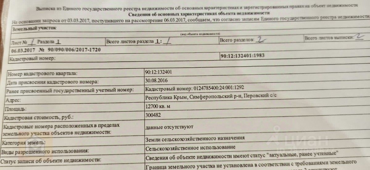 Кадастровый номер участка 90:12:132401:*** указал продавец