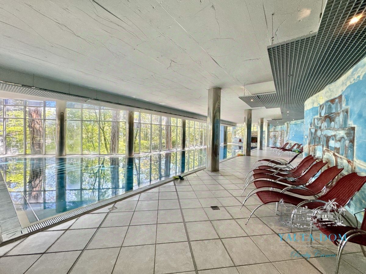 Трехэтажный таунхаус, общей площадью 174,3 квадратных метра. Расположен на территории эко-поселка в окружении вековых сосен, с выходом в заповедную зону. Просторная территория комплекса 1 Г, охрана, видеонаблюдение, своя часовня, детская площадка, оборудованная зона барбекю, беседки для отдыха расположены в уютных уголках по территории комплекса. С территории имеется два охраняемых выезда. Отдельное здание для проведения досуга, в котором: крытый бассейн 25 квадратных метров с подогревом 28 градусов с морской водой, ультрафиолетовая система стерилизации, сауна за дополнительную стоимость, хамам с купелью, тренажерный зал, спорт-бар, бильярдная, настольный теннис.