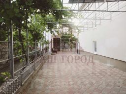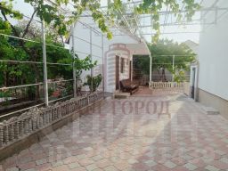 Двор просторный, вымощен плиткой, живой навес из винограда. Есть времянка с зоной отдыха, дополнительный туалет и прачечная во дворе.